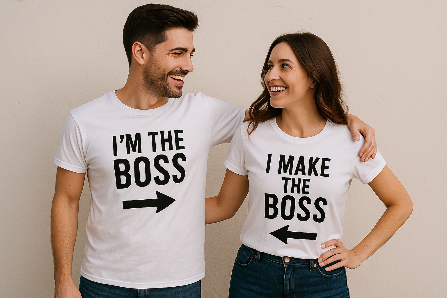 Nem todo casal gosta de demonstrações intensas de afeto em público. Para esses, as camisetas com frases mais discretas ou engraçadas cumprem bem o papel. Um toque de humor muitas vezes é suficiente para expressar carinho sem precisar apelar para declarações exageradas.
