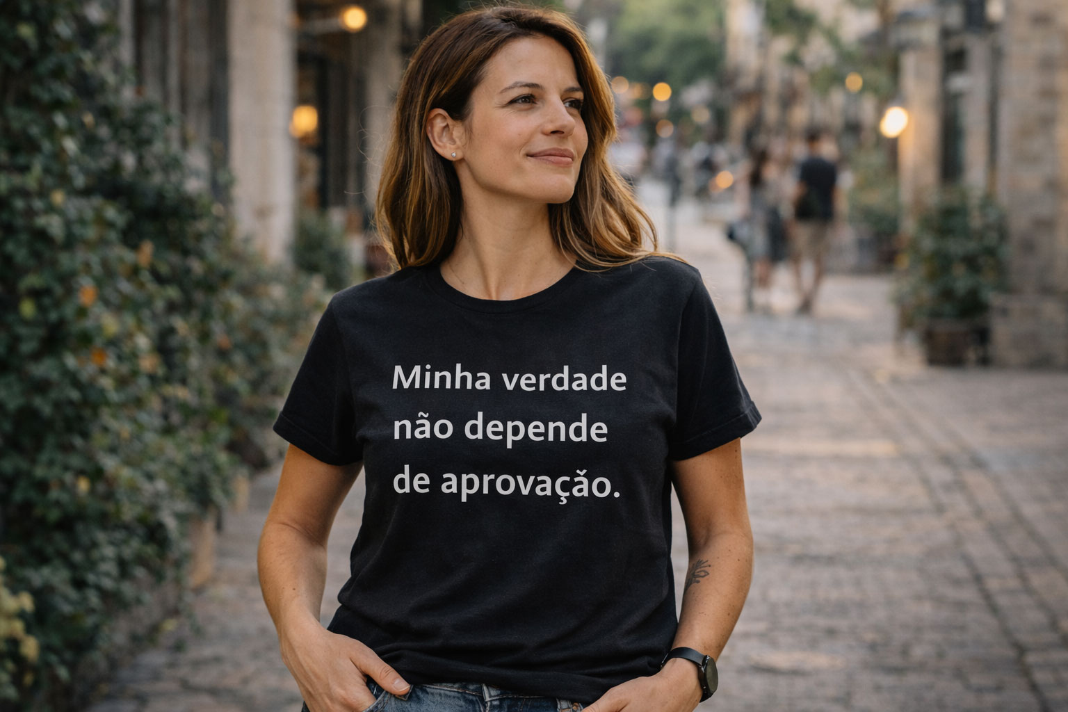 A frase presente na camiseta simboliza essa autonomia emocional. Ela comunica que a pessoa se orienta por seus próprios valores, em vez de adaptar constantemente sua identidade às expectativas externas.