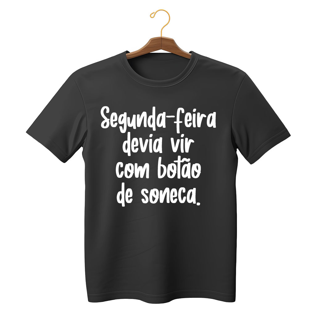 A camiseta “Segunda-feira devia vir com botão de soneca” traduz de forma perfeita o sentimento de milhões de pessoas que encaram o início da semana com aquela preguiça clássica. Com humor e estilo, a frase estampa o desejo universal de estender o fim de semana e apertar o botão de soneca eterno.