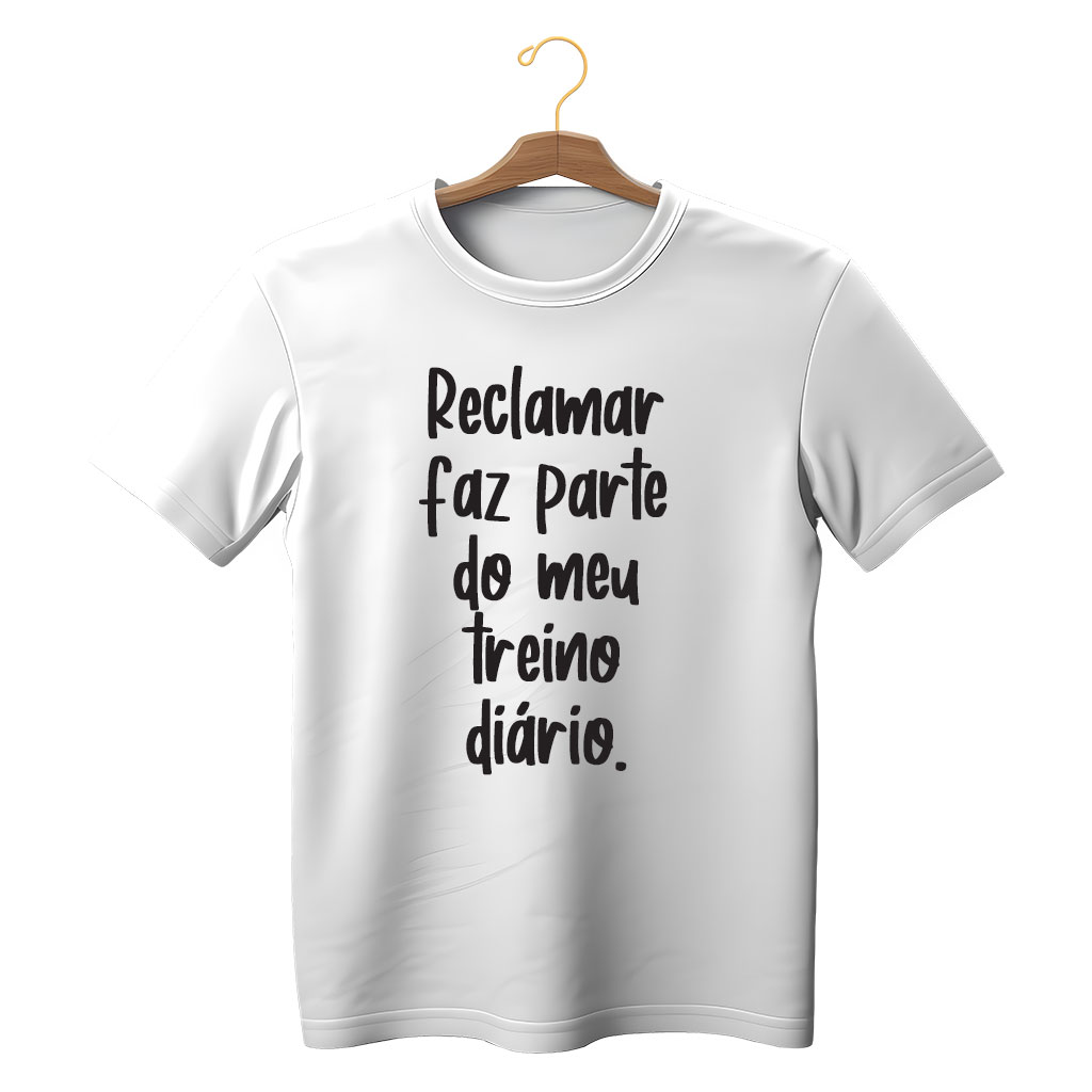 Mais do que uma peça de roupa, a camiseta “Reclamar faz parte do meu treino diário” é uma forma divertida de vestir autenticidade, transformando até os resmungos em atitude fashion.