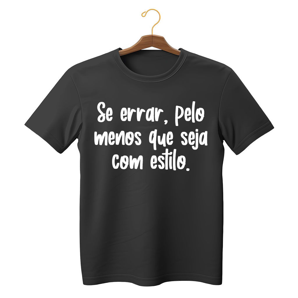 A camiseta “Se errar, pelo menos que seja com estilo” é perfeita para quem acredita que a vida é feita de tentativas, e que até os erros ficam melhores quando acompanhados de autenticidade. A frase estampada traduz a leveza de quem encara as falhas com humor e ainda transforma cada momento em oportunidade para mostrar personalidade.